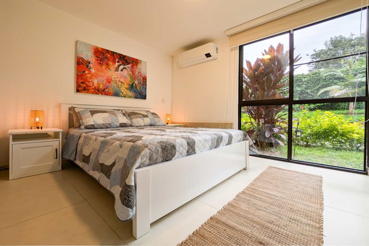 El apartamento cuenta con todas los elementos para su estadía, como estufa, nevera, platos, cubiertos, microondas, cafetera, smart tv con Netflix, wifi, agua caliente, aire acondicionado para la habitación principal, lavadora, comedor externo, mosquiteros, ventiladores para cada espacio, además de un asador para realizar un rico BBQ.